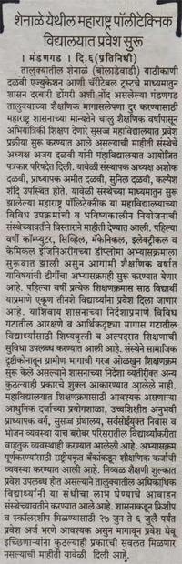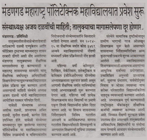 Mandangad Maharashtra Polytechnic college admissions in progress
