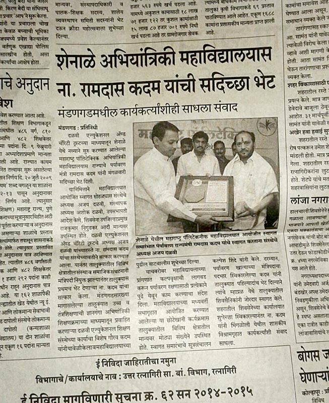 Shri Ramdasji Kadam (Cabinet Minister of Environment) visited Maharashtra Polytechnic - Mandangad